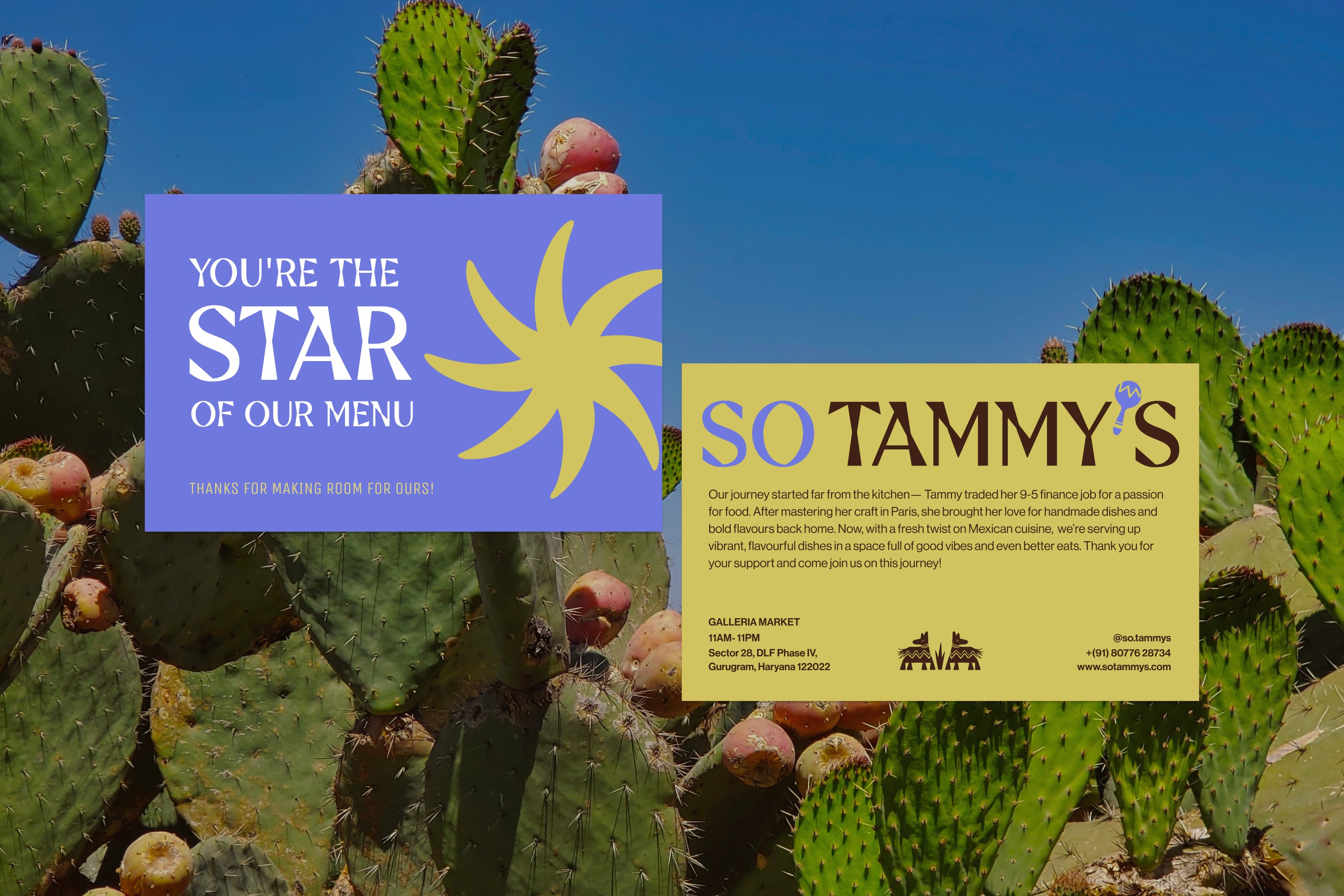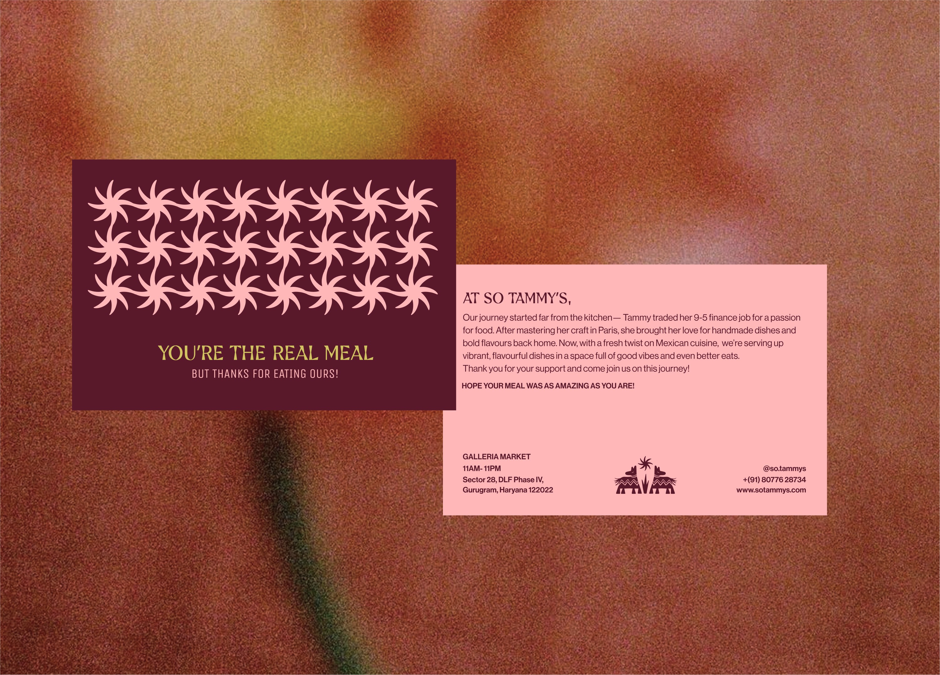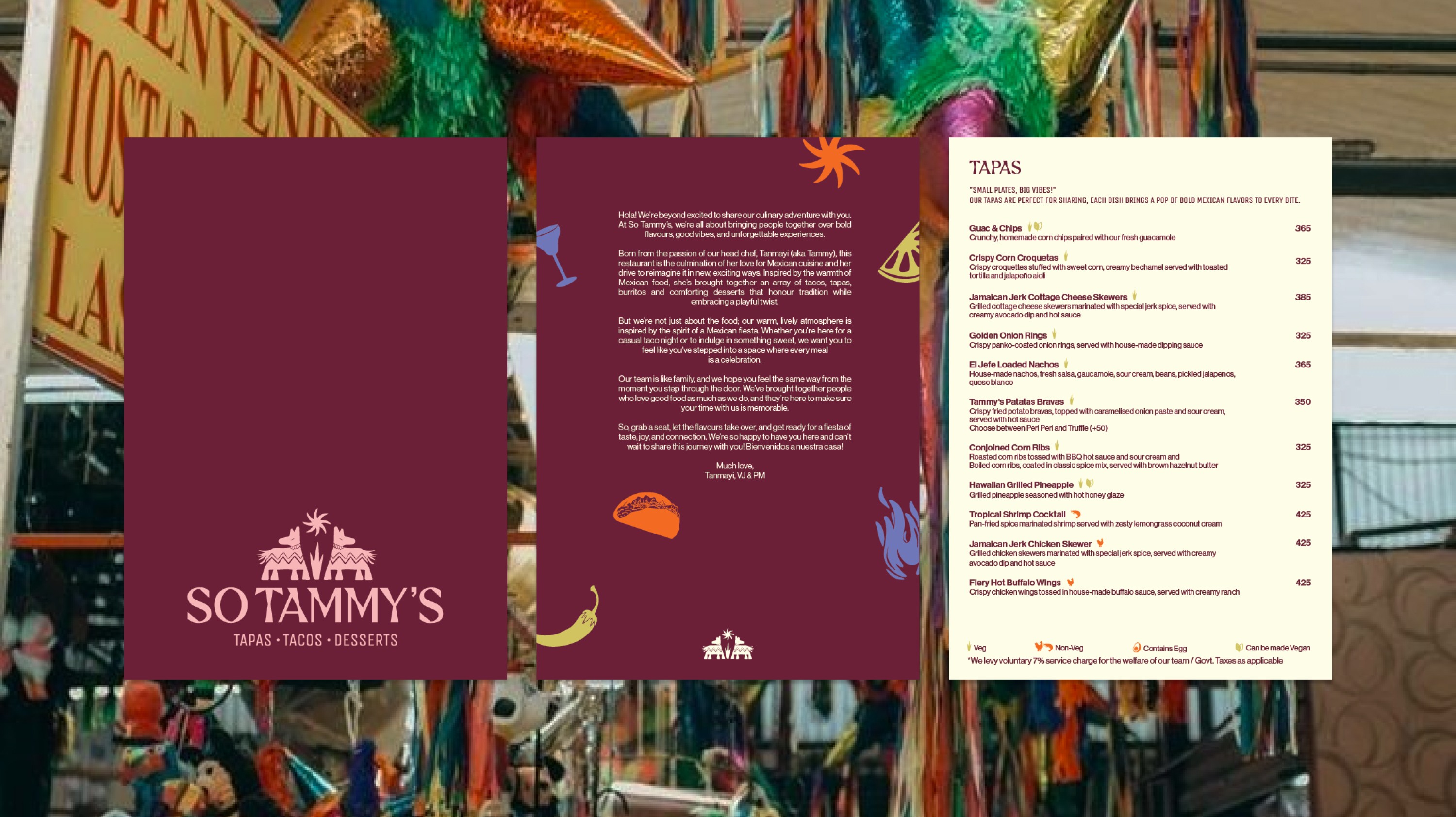 The colour palette draws from the traditional hues of Mexican festivities, exuding warmth and cheerfulness. The typeface is fun, cool, and whimsical, combining a quirky aesthetic with an underlying sense of quality and care. In this identity, every meal is an event, every bite a reason to celebrate. This concept effortlessly draws in a diverse crowd, keeping things fresh, inviting, and always keeping the spirit of TAMMY'S alive! Whether you’re here for a quick bite, a special occasion, or a family gathering, Tammy’s turns any visit into a memorable experience. The visual language is more than just playful; it’s an invitation to join in, connect, and celebrate the joys of life, one taco, one salsa, and one laugh at a time, with delightful surprises at every turn.